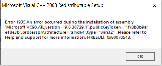 Hi there, I'm facing this error while installing Visual C++ 2008 on Windows 10.