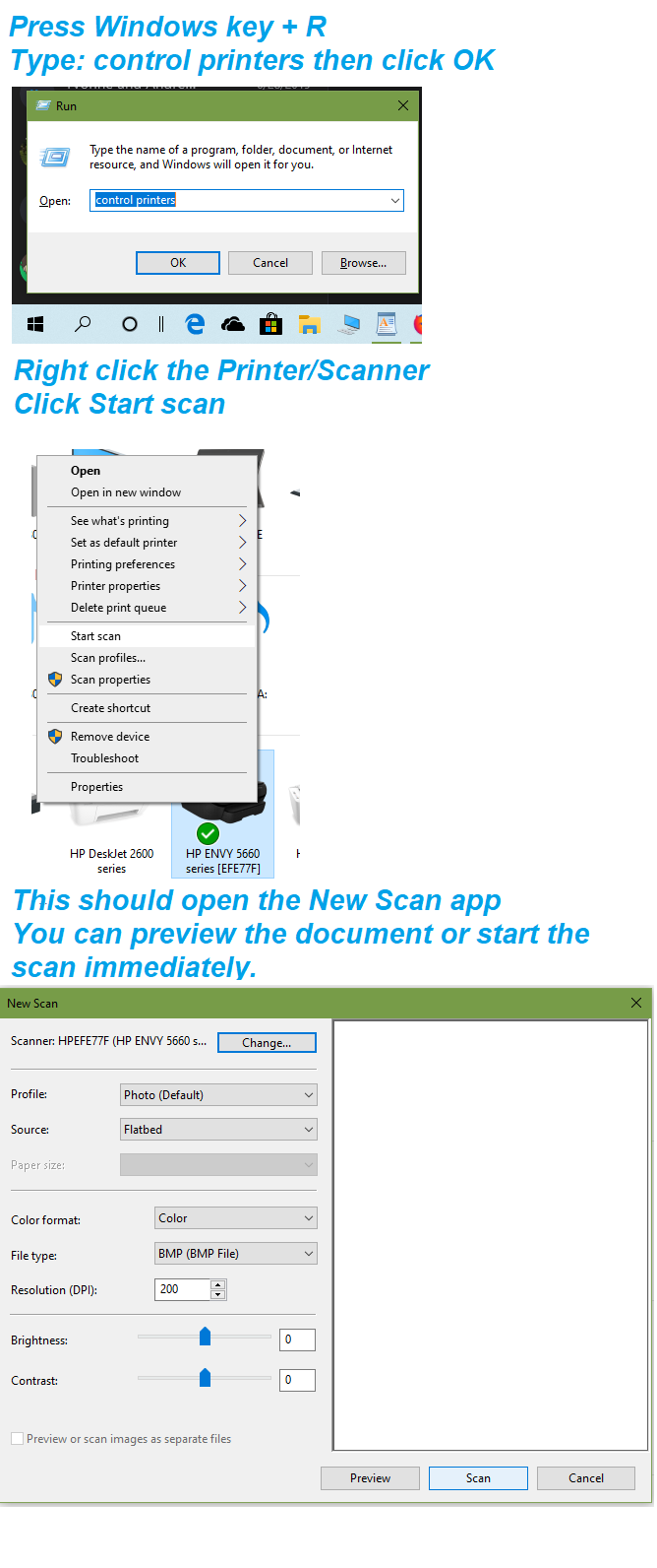 - Now type Control Panel in Start Search, open CP, choose Icon View. In Control Panel open Devices and Printers, right click printer to delete Printer and any scanner or fax of the same name. Restart PC.