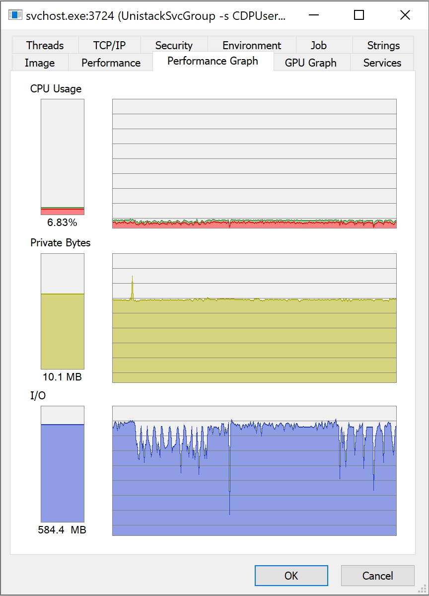 So I tried the clean boot with every thing removed, all non microsoft services turned off and all startup programs disabled, I even turned off throttle stop (undervolting software). No luck connected devices platform user service is still running above 10 percent with a few spikes to 20 percent and over.