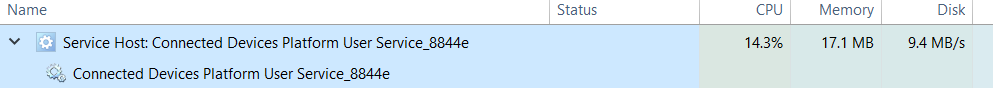 is it possible that this is related to OneDrive syncing and disk management? I see this problem periodically ever since I turned on OneDrive to keep cloud backups of my local drive. Most recently it was this task: connected devices platform user service_a1e7e