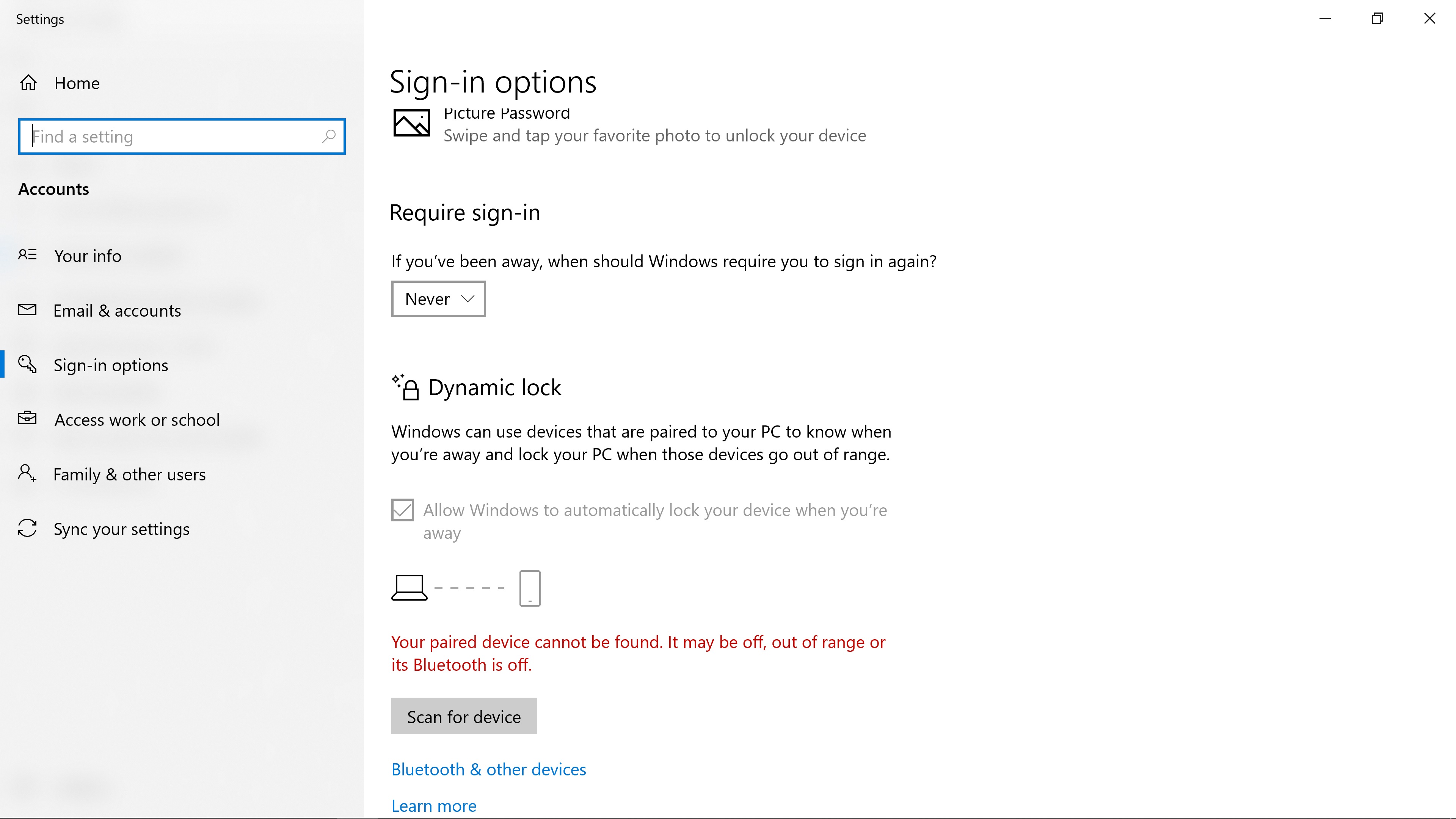 not able to change Dynamic Lock settings, because the option is greyed out !