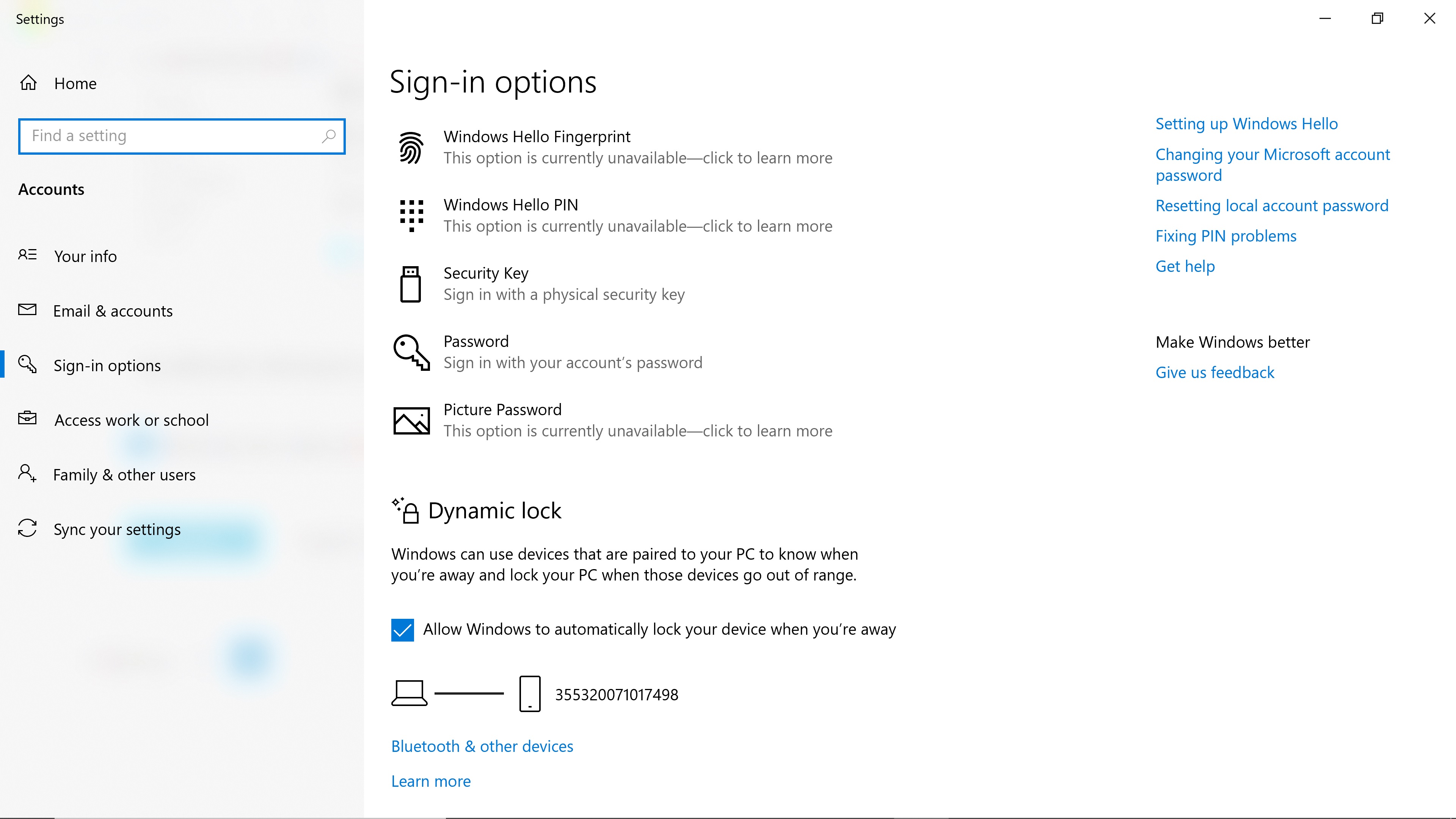 not able to change Dynamic Lock settings, because the option is greyed out !