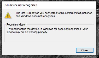 I keep getting this showing up when this USB works on other computers, just not the computer I need to use it on!