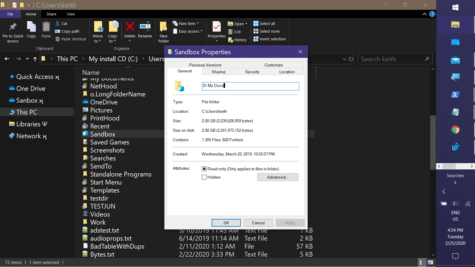 Properties, then the Location tab. That will tell you the file system location the folder points to.