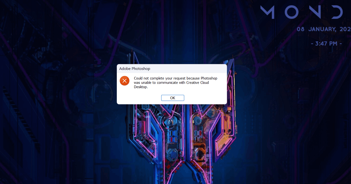 That error is caused by the graphics engine in the Adobe Software installed on your PC.