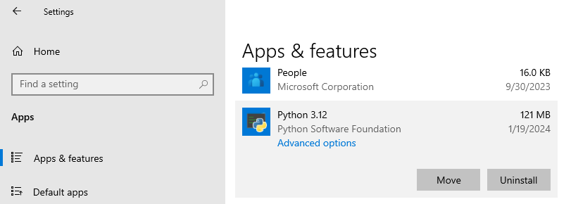 I installed Python3.12 from the microsoft store and wanted to uninstall it. However, I'm unable to do so. Can someone let me know how to uninstall this?
