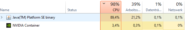 As per the screenshot and the description provided by you in the post, seems that Java Platform SE Binary is making high CPU usage. In order to get clarity and to assist you accordingly, please reply with the answers to the questions below: