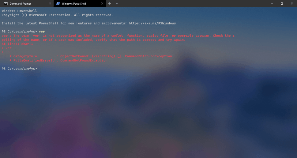 PowerShell works a little differently from the Command Prompt, in some cases the command is different!