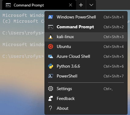 To switch click the arrow and select the correct shell (in your case command prompt) from the dropdown