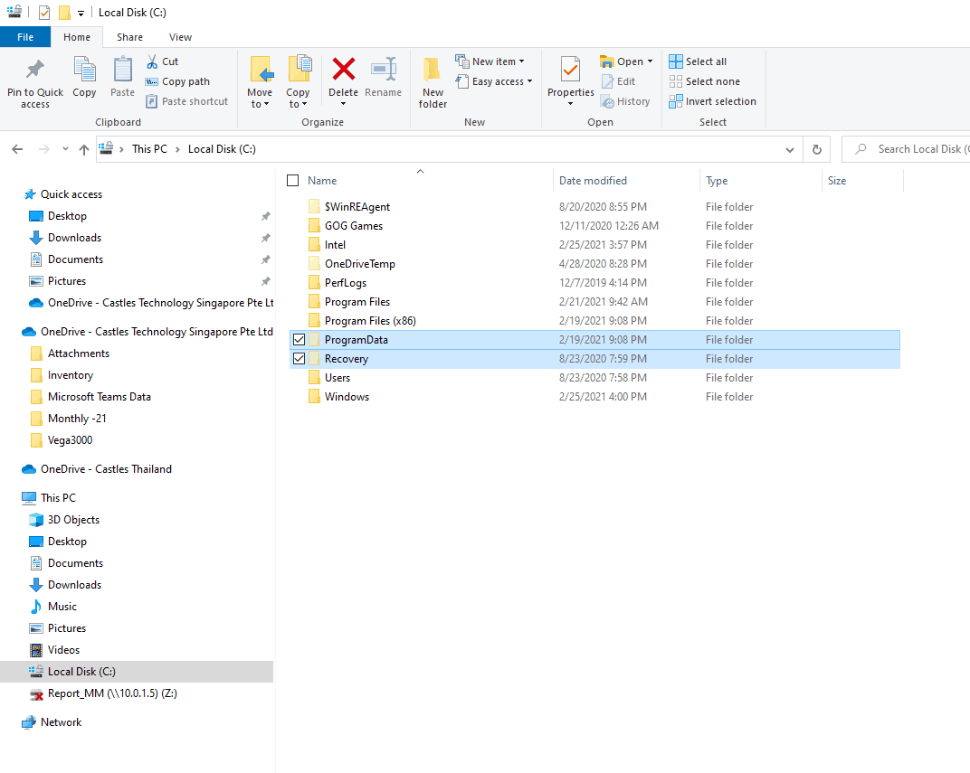 ProgramData is a Windows folder that store applications settings. If you deleted it, Your applications will start to fail. The Recovery folder has the recovery environment.