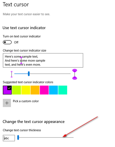 The slider at the bottom of that page can be used to change the size of that cursor, drag it to the minimum value, which is the default