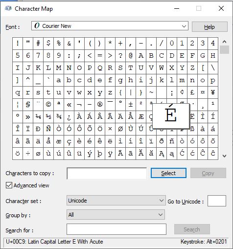 I am looking for a way to show the ASCII codes of all characters that have one in the Character Map in Windows 10 Pro (as used to be the case in older versions), in such a way that when I wish to insert a special character in another application I can easily check what code to type (e.g. Alt+0200 for "È").