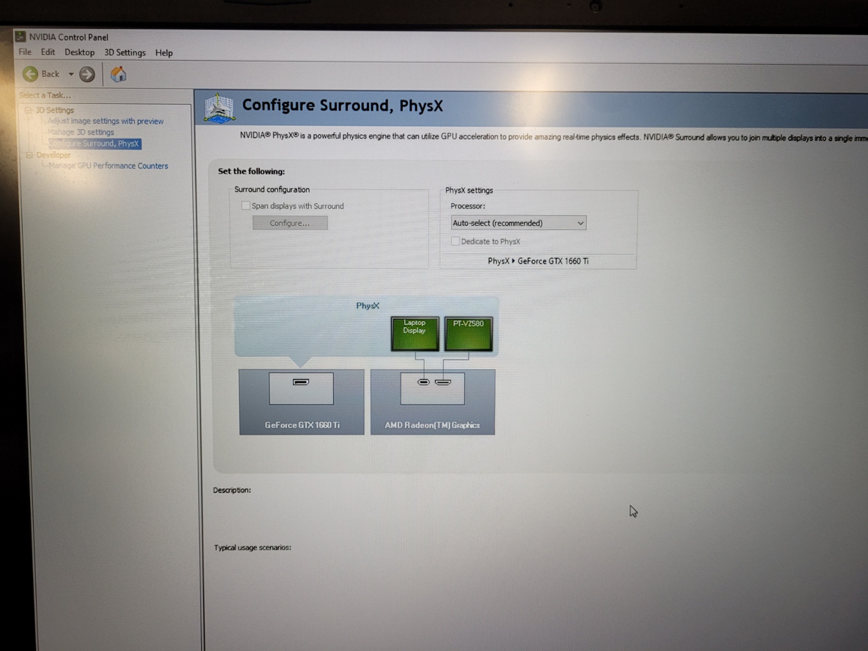 Hi Thanks for the reply. No that unfortunately is the problem & I have run this by NVIDIA with no real answer from them. When I open up the NVIDIA Control Panel, the only tasks that are showing are the 3D Setting with the 3 sub settings & the Developer Task Setting with the one sub setting. I have all 4 items checked off in the drop down menu at the top of the page. As I mentioned, this problem is on my laptop where I'm missing these particular Tasks. On my Desktop which also has a NVIDIA card, it shows that I have access to all 4 Tasks with various sub tasks, so I know what you are referring to. I don't know if a switch or program has been turned off or that particular feature is not available. I've tried everything to get those 2 tasks to appear, but no luck.