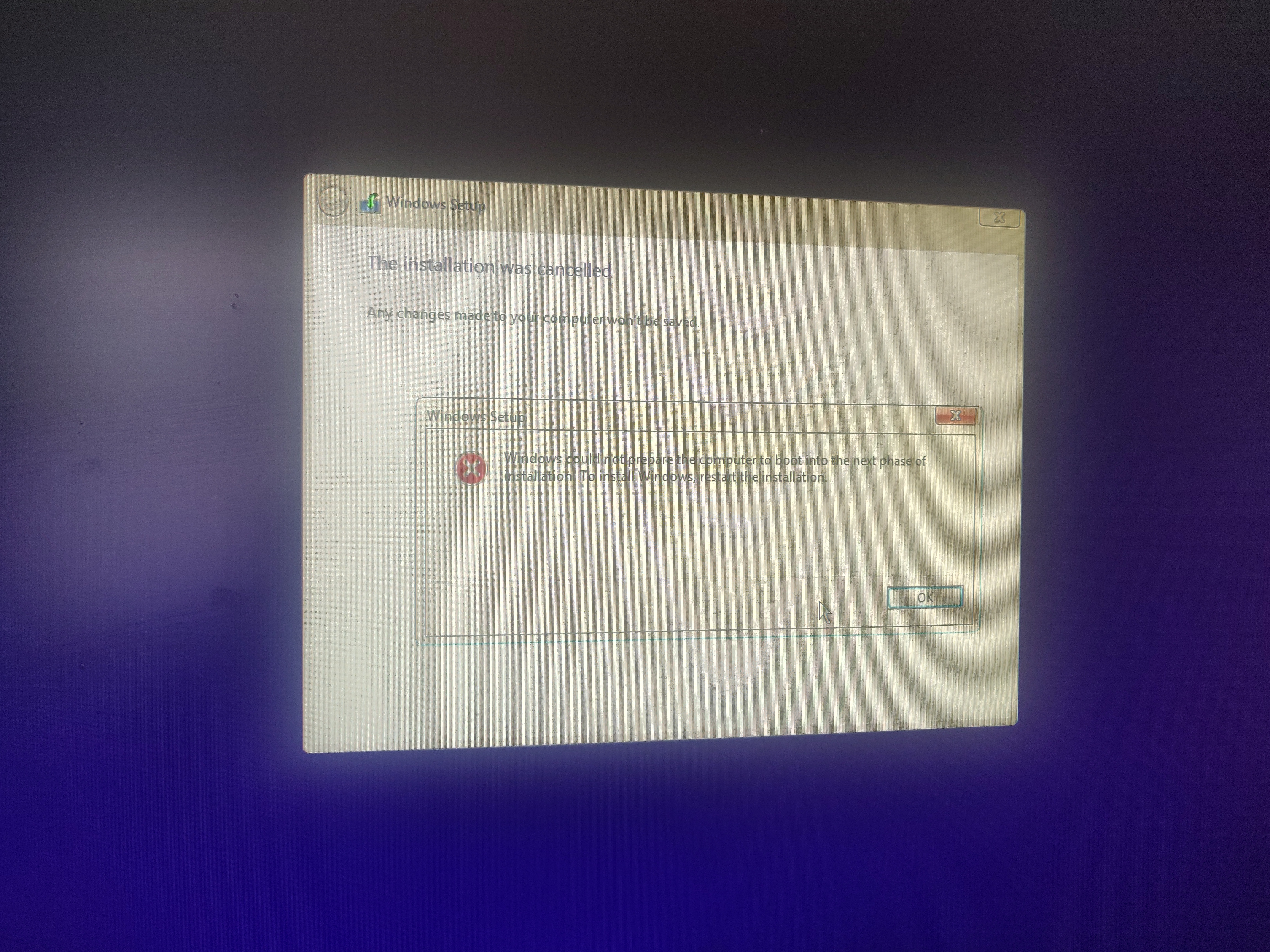 I have formatted the drive and tried to install Windows onto it. I get this error during the installation: