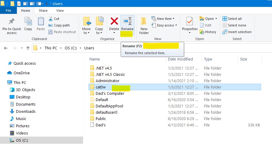 If you do still want to change the name on that folder, MVP Shawn Brink provides the safe method to do that on the link below