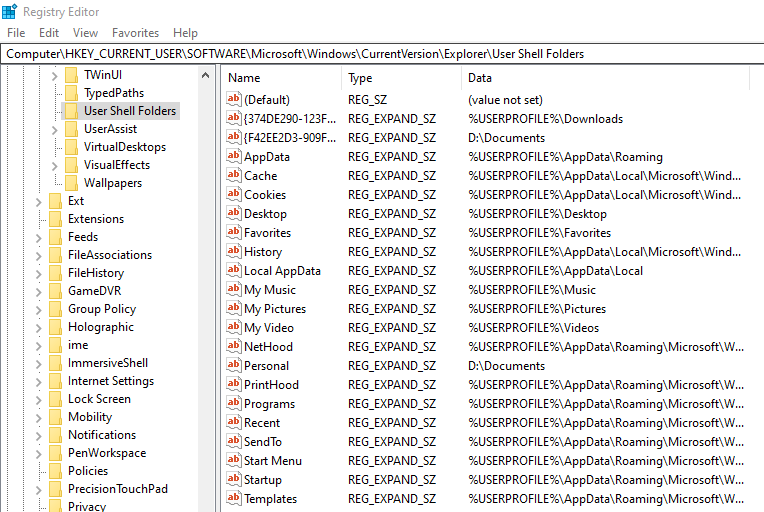 HKEY_CURRENT_USER\SOFTWARE\Microsoft\Windows\CurrentVersion\Explorer\User Shell Folders