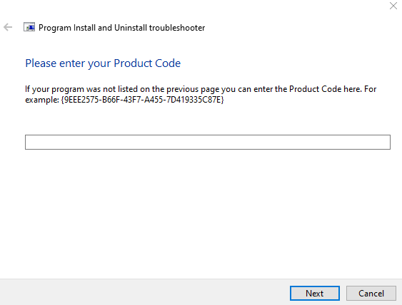 Just exit out of the troubleshooter. I suggest downloading a small portable program, Geek Uninstaller Free, to remove the uninstall entry and any traces of the program that may remain.