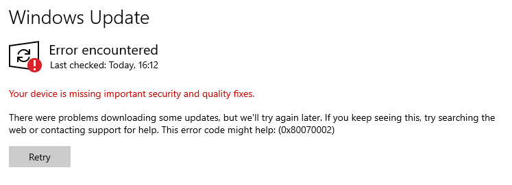 Today i have clean installed windows 10 after a week of trying windows 11 in beta channel , after clean installing , i have checked for updates and there were many driver updates which updated successfully , but this : 2021-08 Cumulative Update for Windows 10 Version 21H1 for x64-based Systems (KB5005033) has problem installing , it presents me with the error code : 0x80070002 . Why is this error coming even though i did a clean install . Pls reply about this problem ASAP . you can also see the screenshot below .