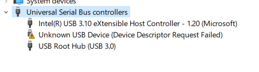 do you find Unknown USB device (Device descriptor Request failed) under the Universal serial Bus controllers