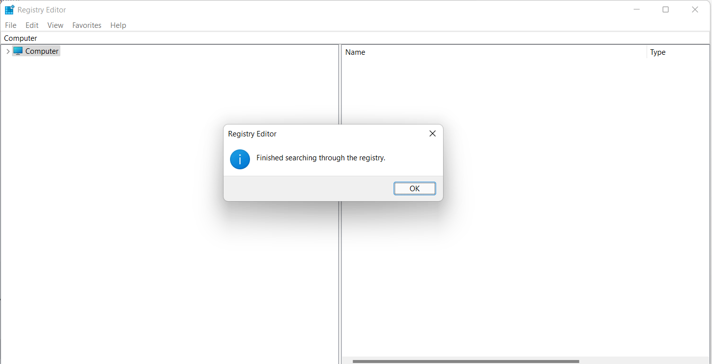 Then pressF3 to continue the search and repeat, deleting any found entry until you reach the end of the registry.