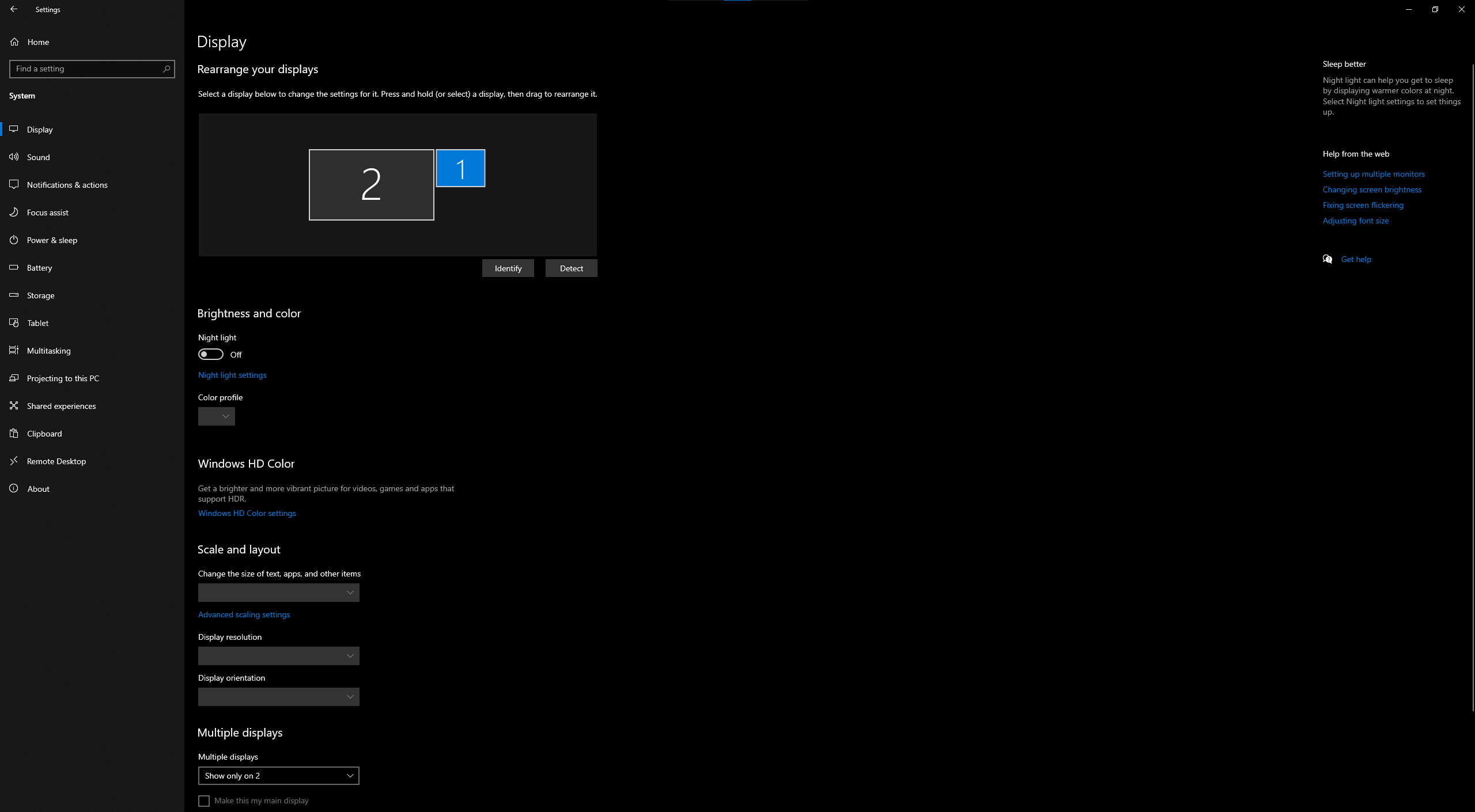 In the multiple display dropdown you seem to have selected "show only on 2"