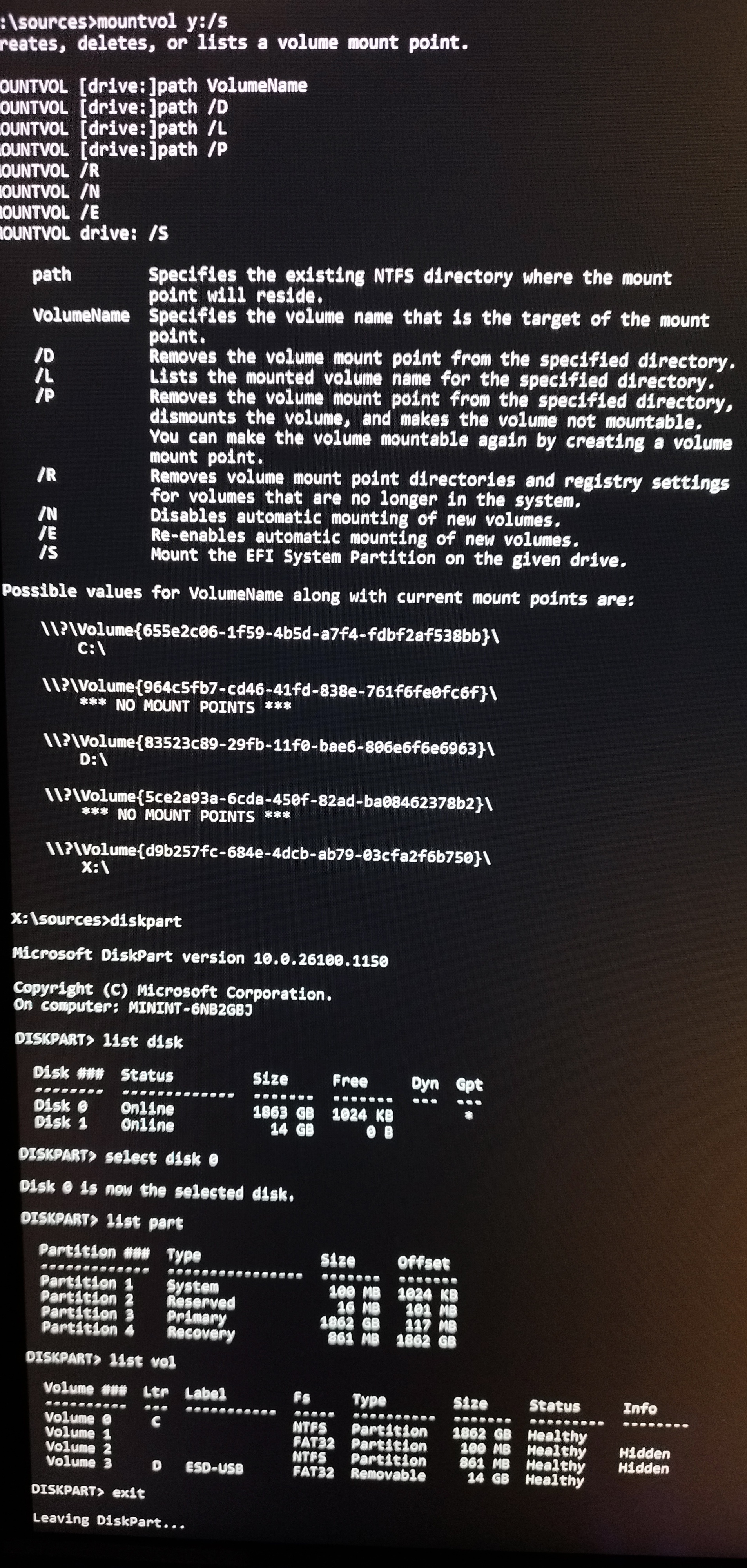 Using your mobile phone or camera, take photos of the output screen and share the images here. Don't quit WinRE yet. Two more commands need to be run.