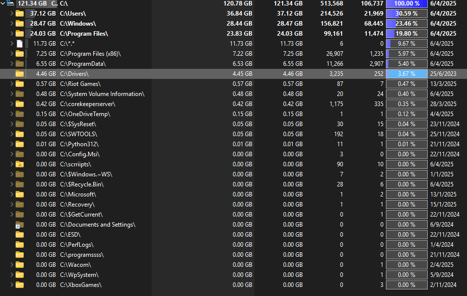 - If you want to know which specific files and folders are taking up a lot of space for cleanup purposes, TreeSize is a very good tool. It excels at visualizing the size distribution of files/folders.