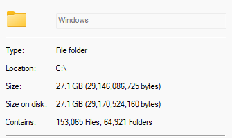 - Hard Links/Junctions: Windows folders (especially the WinSxS folder) extensively use links. Different tools may calculate the actual file size pointed to by these links differently, leading to statistical discrepancies. TreeSize may be more inclined to calculate the actual file size pointed to by the links, while File Explorer properties may only calculate the link itself or handle it differently.