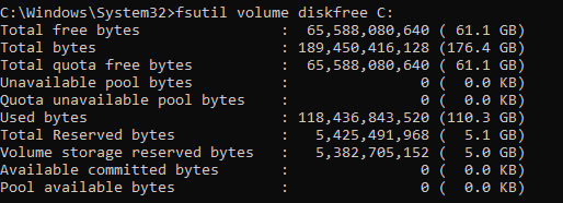 - If you want to know how much space is left on the drive to write new data, the information provided by File Explorer or fsutil is closer to "available" space because it considers the overall occupancy and reservations at the file system level.
