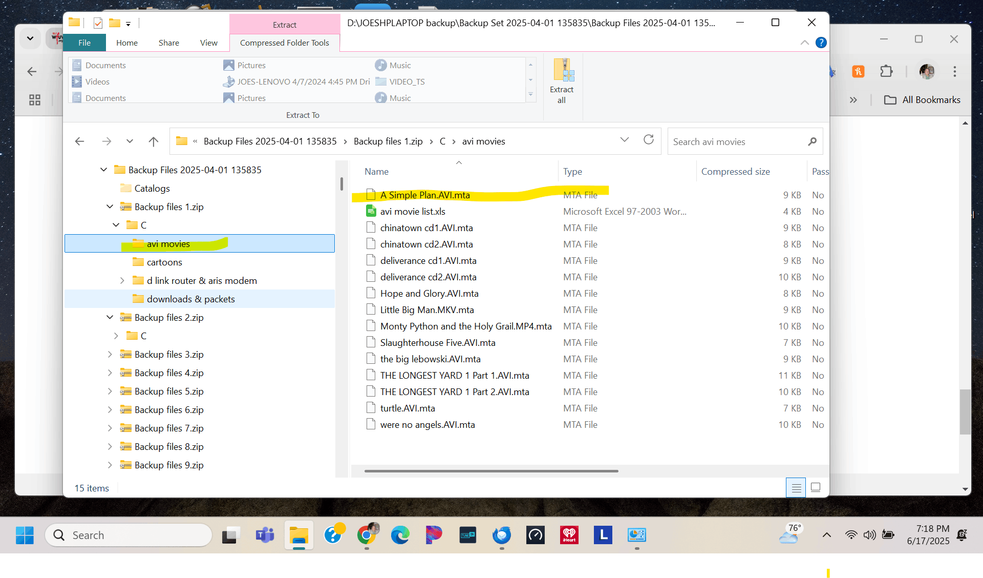 Look inside the backup folder tree for .zip or .vhd/.vhdx files (system image possibly).