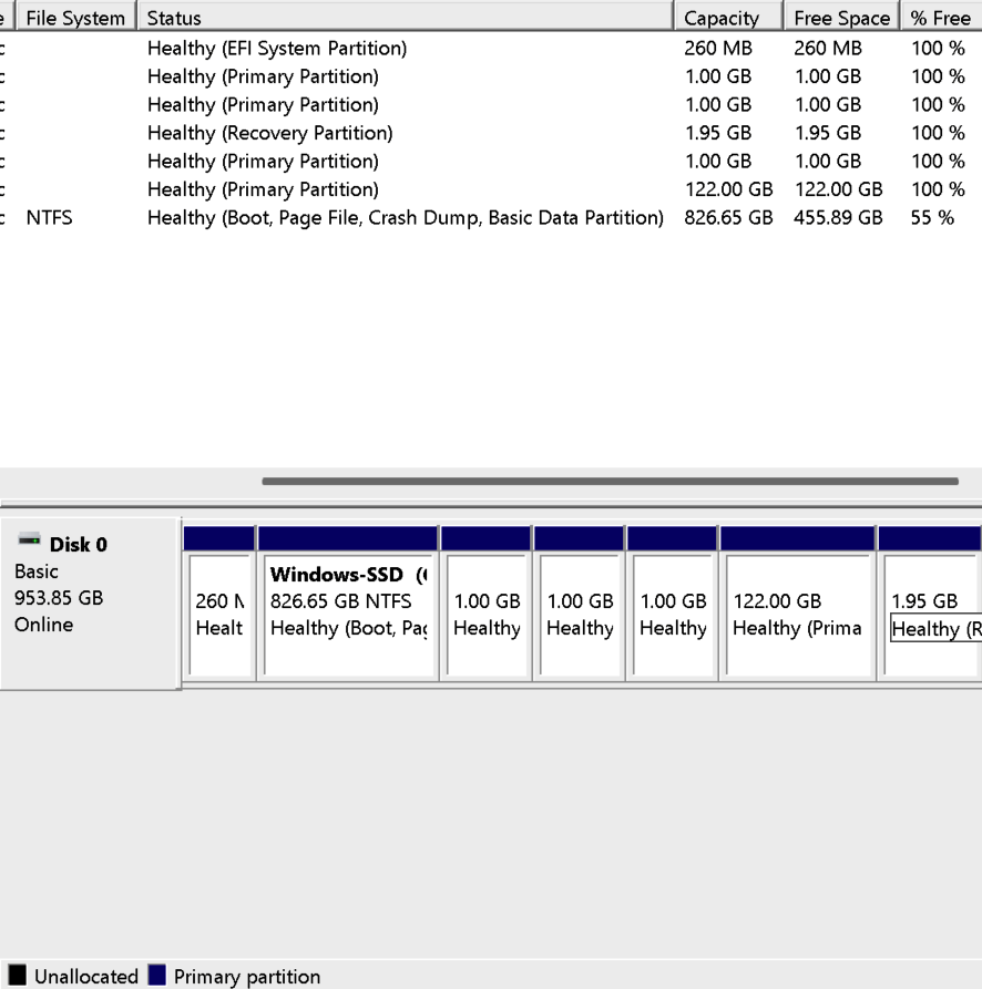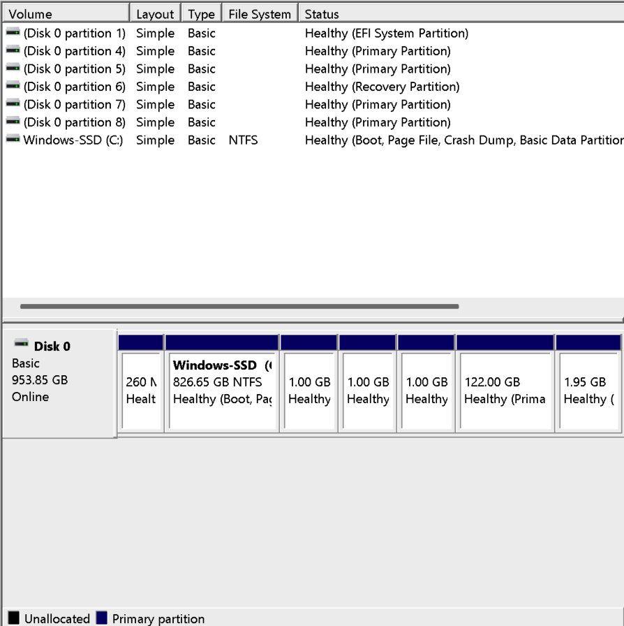 I have many partitions after installing Linux, know, I want to remove the Linux partition (Disc 0, Partition 8, 122 GB) as I switched back to windows. I have backed up all the data on it, so I do not care if it is deleted. I do not wish to wipe my windows partition, for seasons. Additionally, there are many 1gb partitions and I do not know where they came from. Can they be removed, and if yes, how?