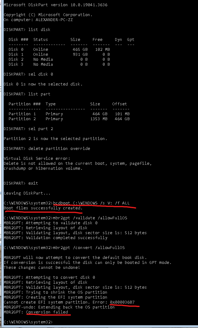 In WinRE Command Prompt, run MBR2GPT. https://answers.microsoft.com/en-us/windows/forum/all/convert-an-existing-windows-10-installation-from/aa8c2de3-460b-4a8c-b30b-641405f800d7