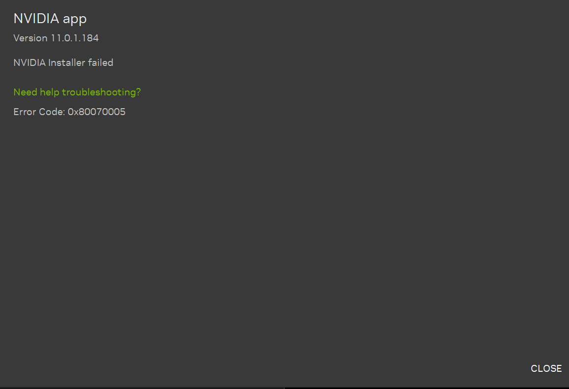 When trying to install version 11.0.2.337 of the NVIDIA app I receive the vague error message: "Error Code: 0x80070005". I've disabled my Anti-Virus (Windows 11 built-in AV) as well as Windows Firewall. I've ran the NVIDIA App Installer in Administrator Mode. I've also made sure to give my user account as well as all Administrators permission to "Create Symbolic Links" within the Security Policy settings of Windows 11. I've given Full Control Permissions access to my account as well as all user accounts to the NVIDIA Corporation folder within my C: Drives Program Files folder. I've tried troubleshooting with the instructions provided on NVIDIA's Support Knowledgebase Page: https://nvidia.custhelp.com/app/answers/detail/a_id/422, but nothing provided here has solved that error code. If I were to guess I believe my issue would have something to do with step 3: "3. Please review Group Policy settings, security restrictions, or the system configuration that might prevent the installer from completing its actions.", but the page doesn't detail exactly which settings to change. I would appreciate any and all assistance, advice and help. Please and thank you!