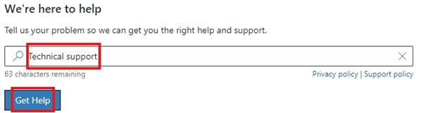 3 Enter Technical support in the input box and then click on the Get Help button below
