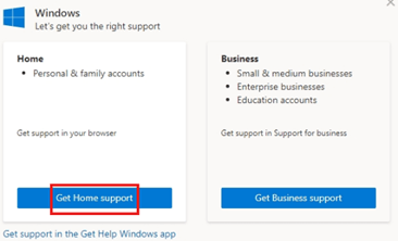 2 Click on Get Home Support on the left hand side
