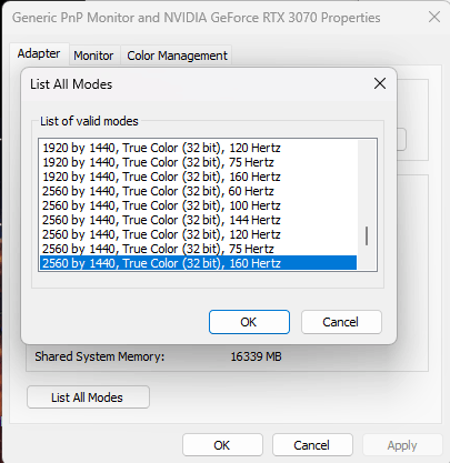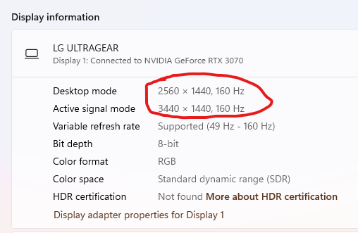 - If incorrect, try setting the resolution via List All Modes in Display Properties.