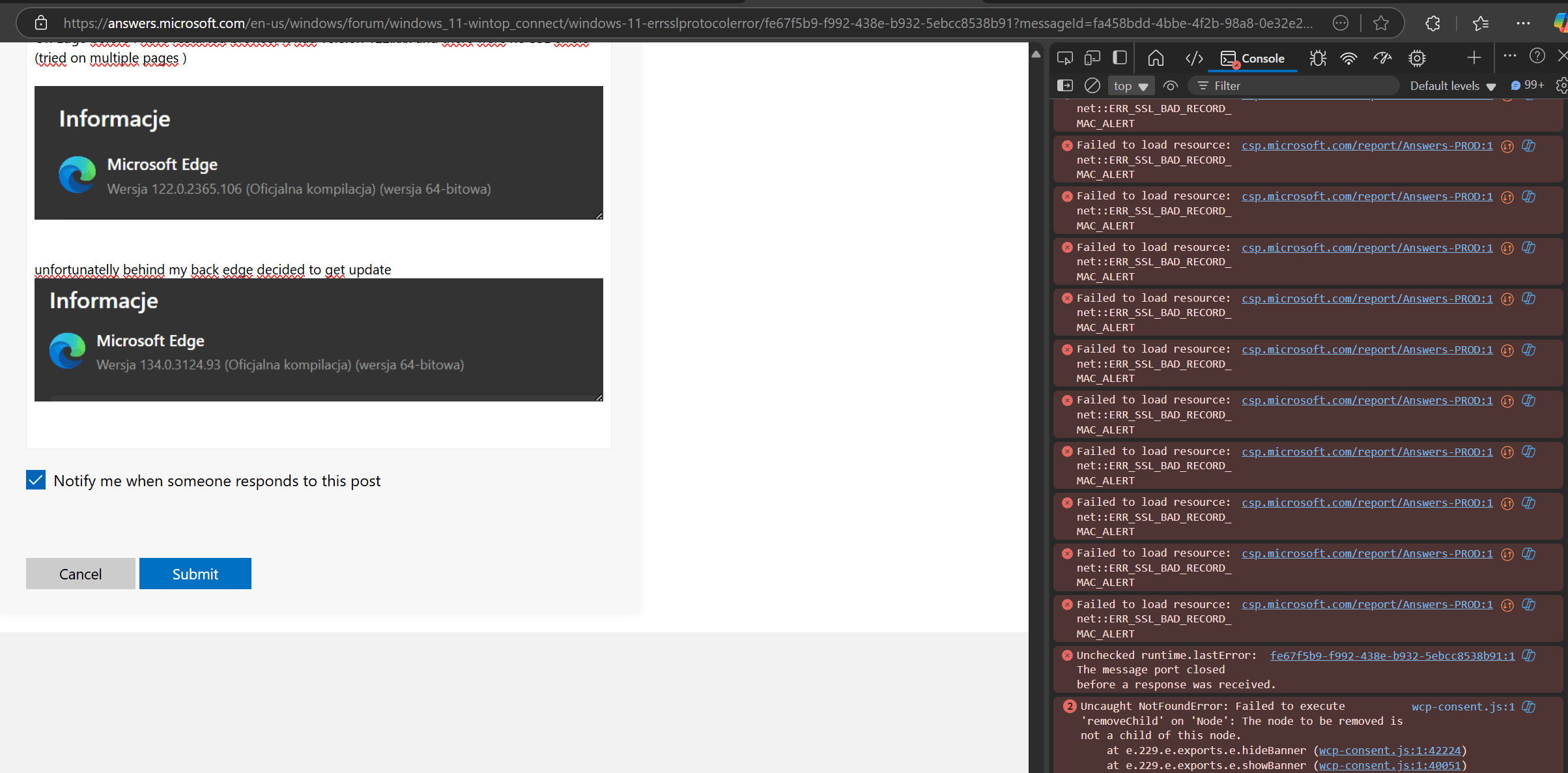 How do I resolve this error: ERR_SSL_BAD_RECORD_MAC_ALERT - Microsoft Community