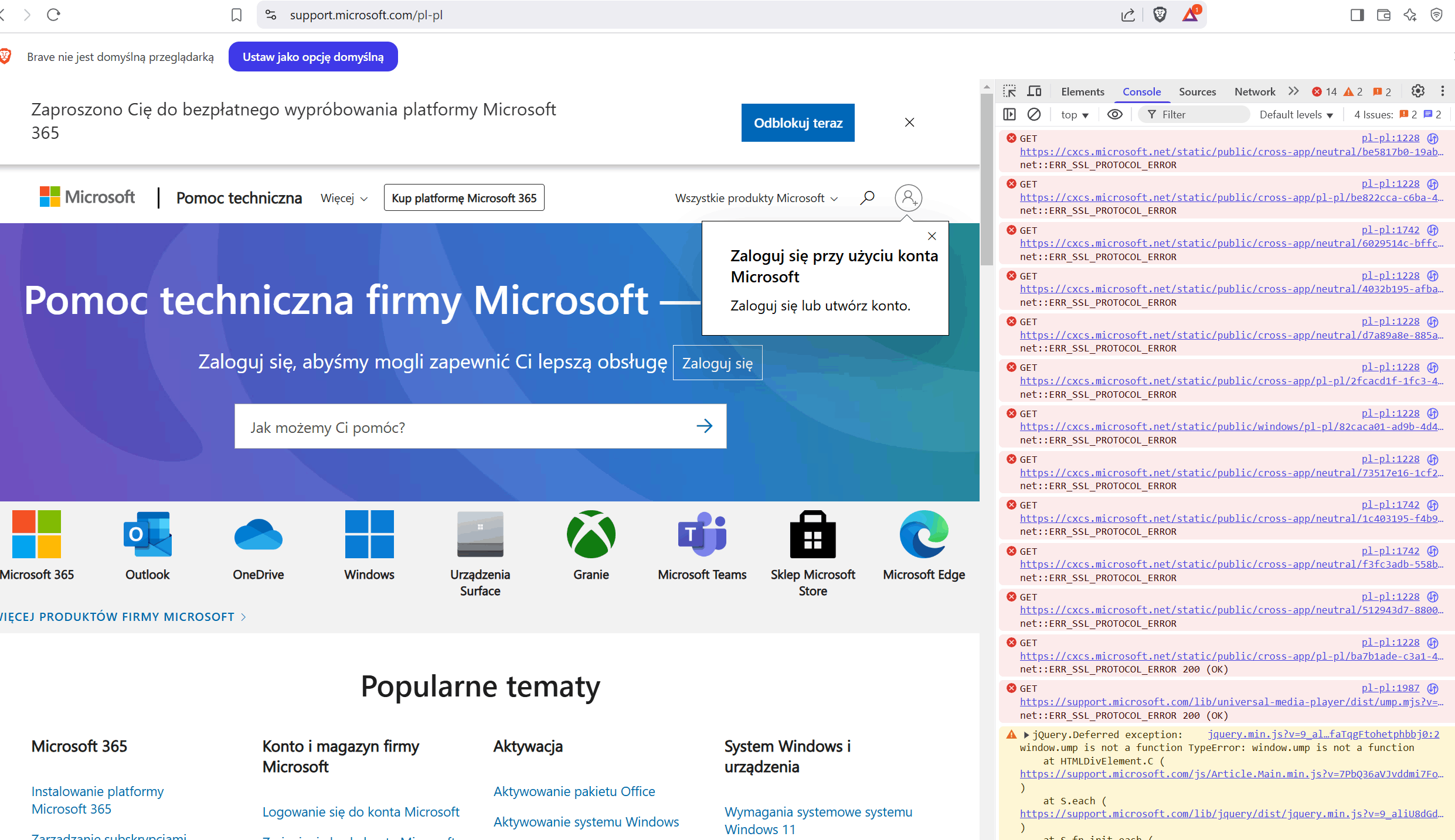 As a test, we tried accessing Microsoft sites using Microsoft Edge on a device running the exact same version of Windows, but were unable to replicate the issue.