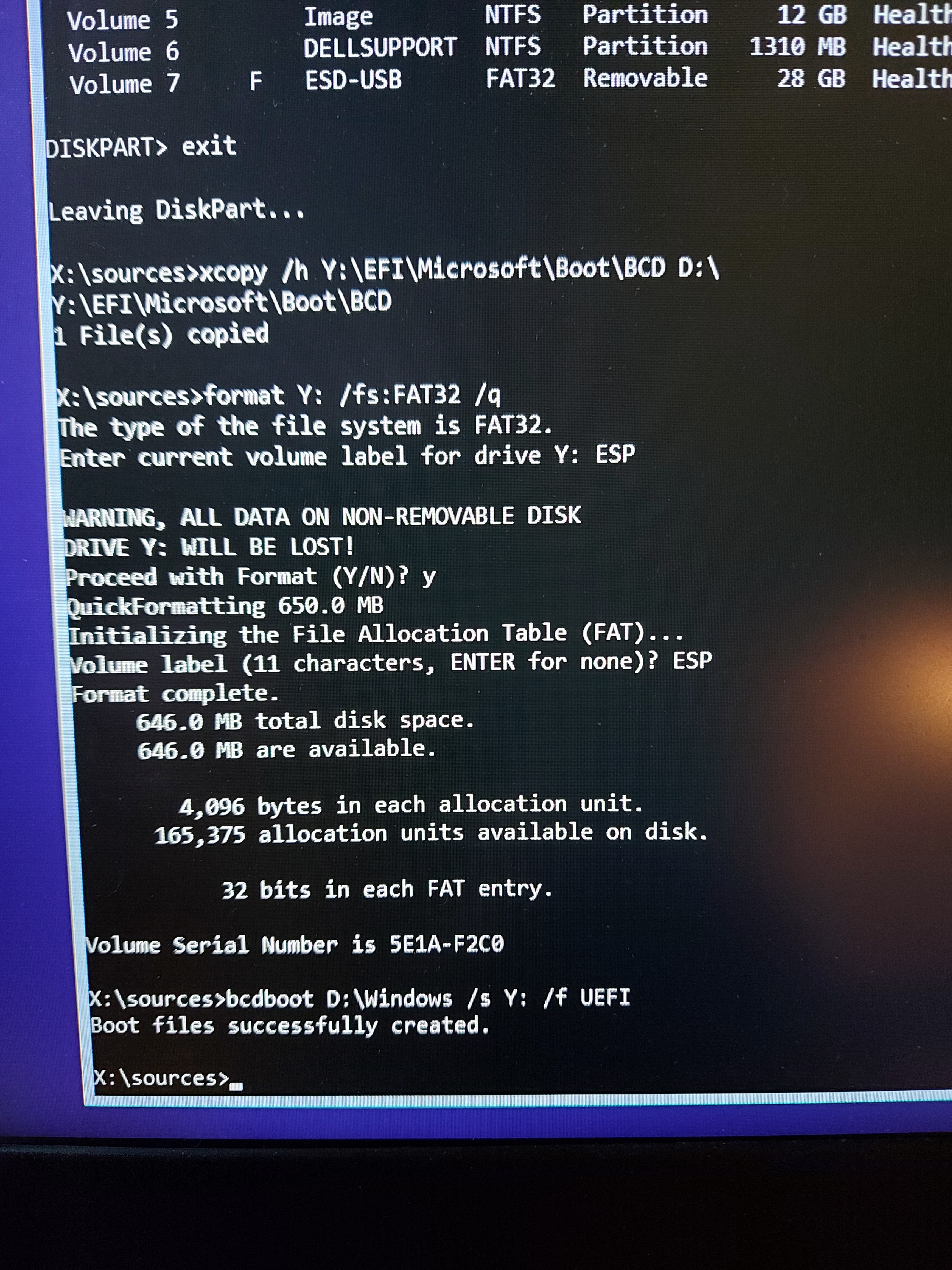xcopy /h Y:\EFI\Microsoft\Boot\BCD D:\