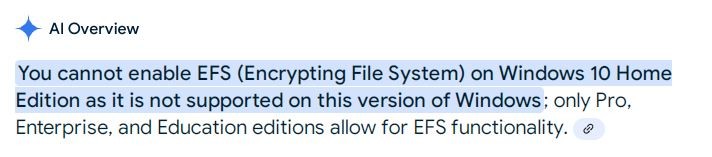 This search https://www.google.com/search?q=how+to+enable+EFS+on+windows+10+home+edition shows me this at the top of the page
