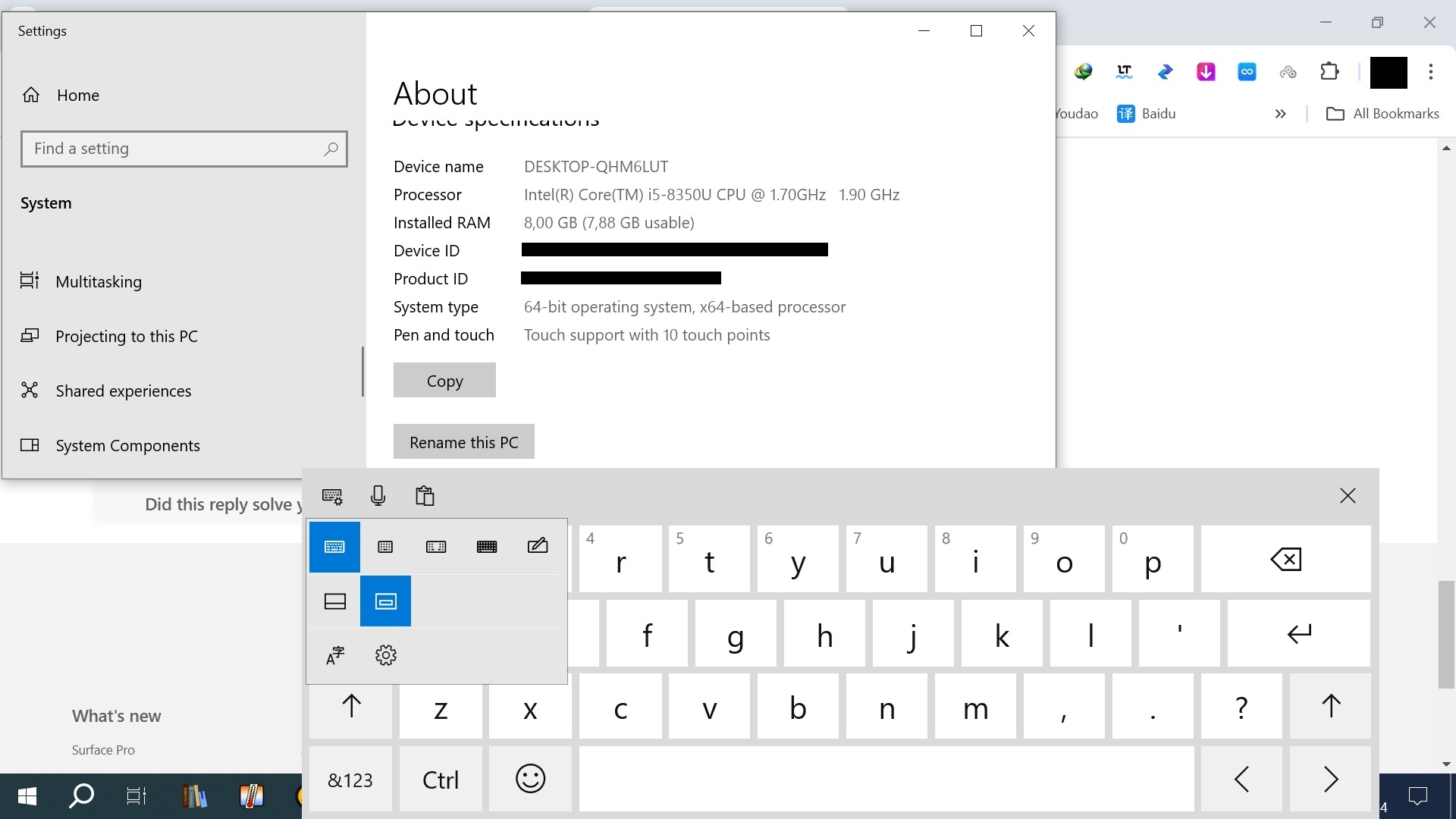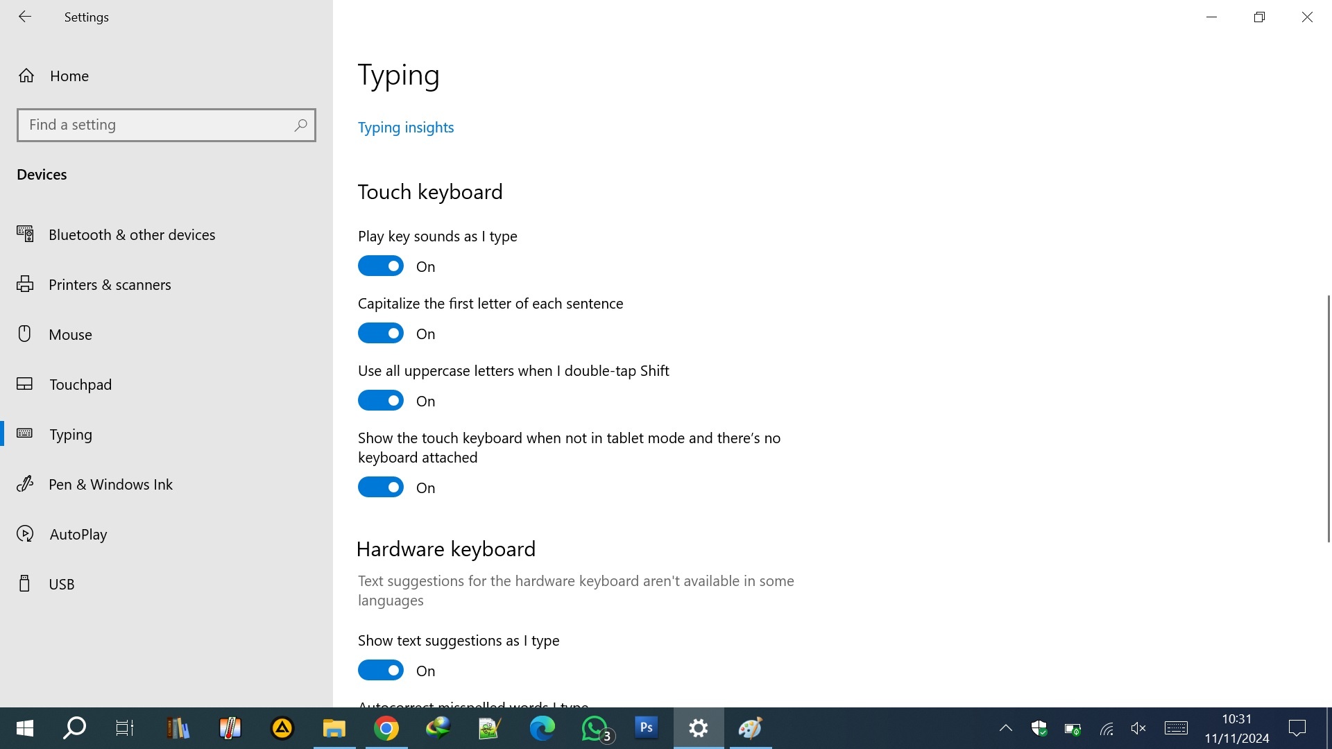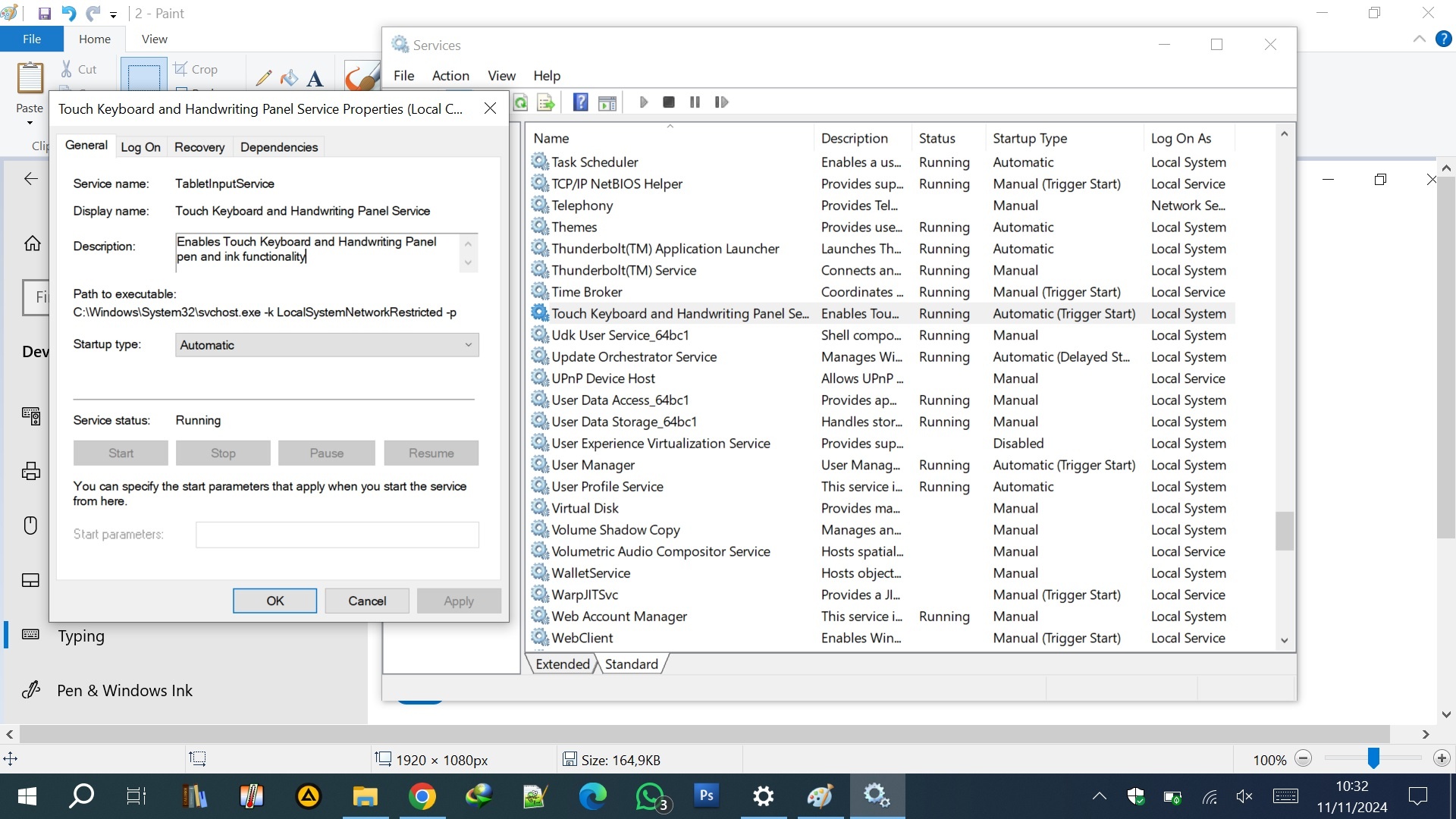 "Touch Keyboard and Handwriting Panel Service" on the list