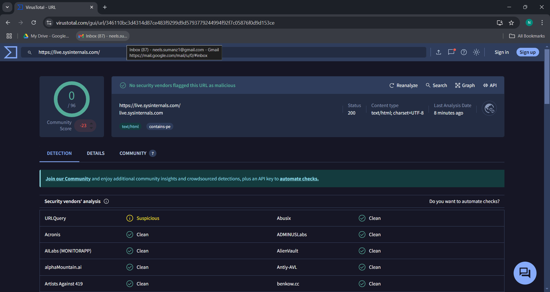Hello, i was just downloading autoruns when i came across this https://live.sysinternals.com/ site so, i decided to do a virus total scan