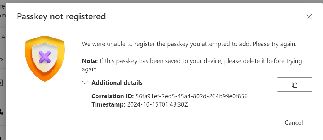 When i'm try creating a passkey, step 1 2 is successful, but step 3 can't saved. already make sure only China regional have this issue, another country can register it.