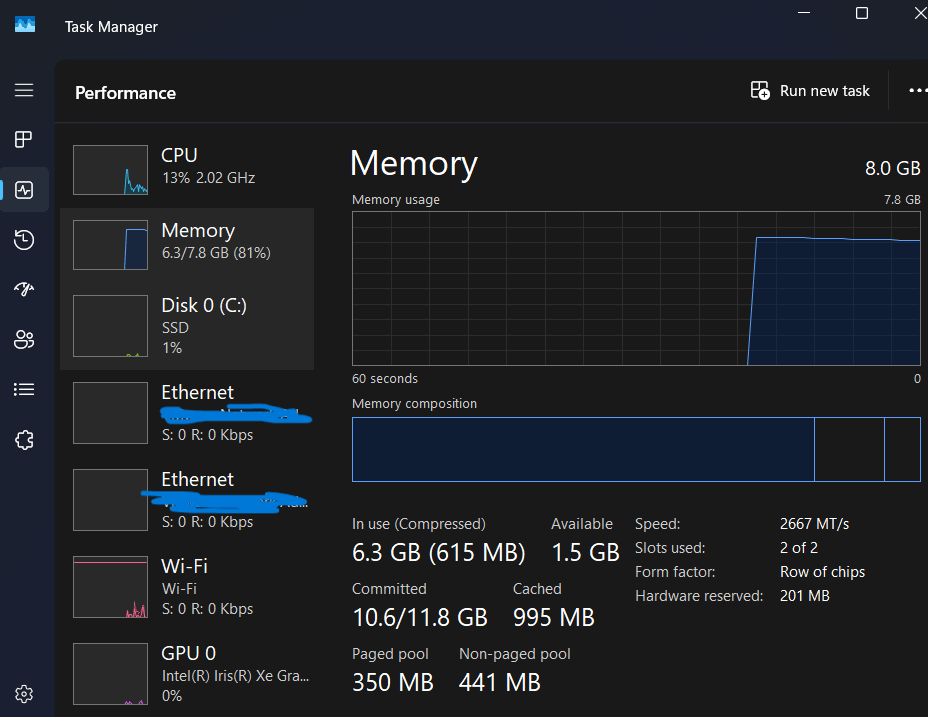 Modern day Windows requires a minimum 16 GB RAM especially if you want to run VMs, modern games, other high RAM usage apps.