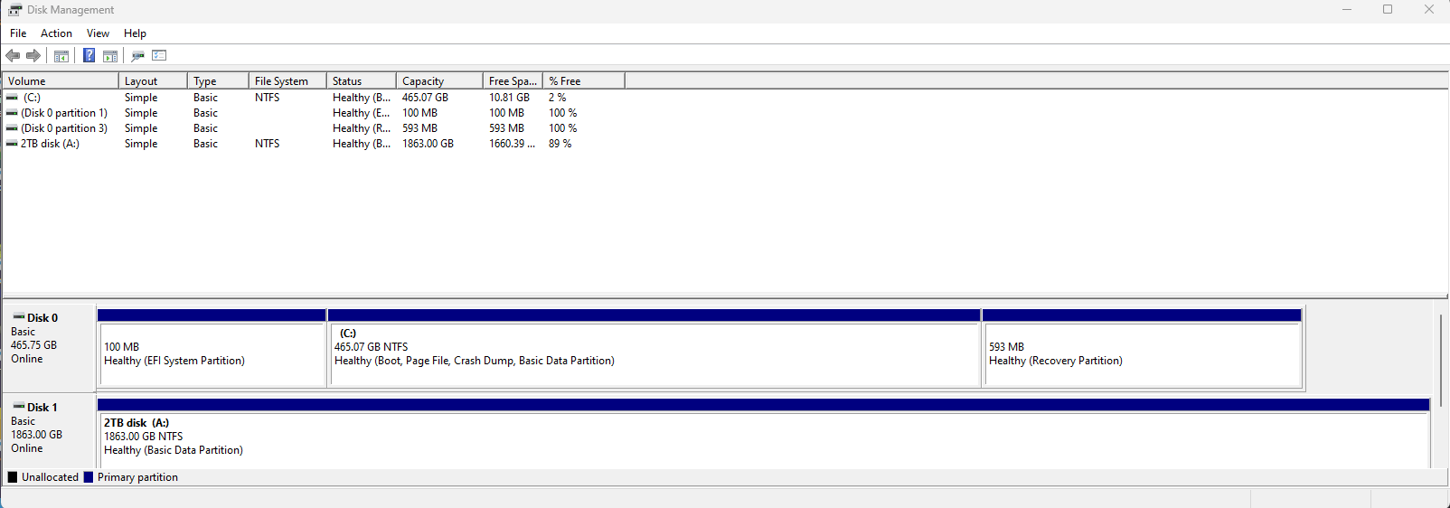 Expand the bottom pane of that window so all drives are visible in that pane, please provide a screenshot of that window.