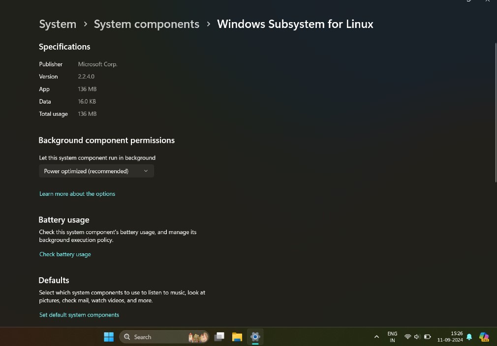 2024-09-11T08:55:59+00:00 I have Installed the WSL from Microsoft Store which I can see in Installed System Components