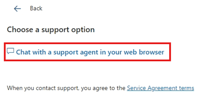 6 Click on Chat with a support agent in your web browser inside