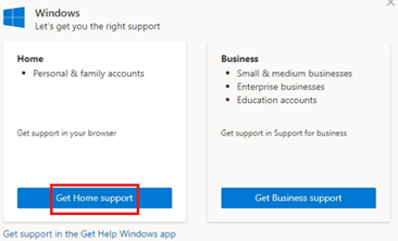 2 Click on Get Home Support on the left side