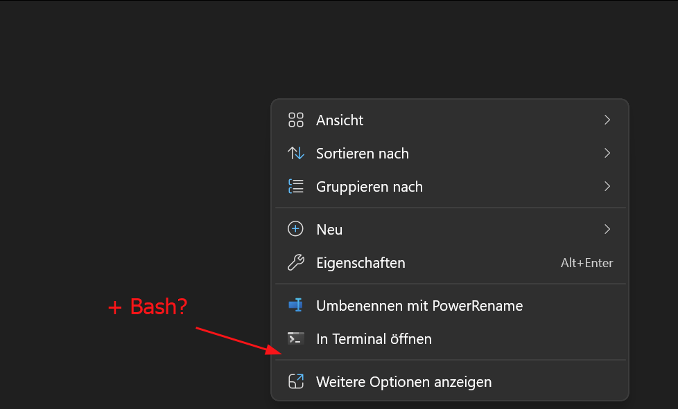 Understand that you want to use Bash in Powershell to open a specific folder and add it to the right-click menu bar as needed.