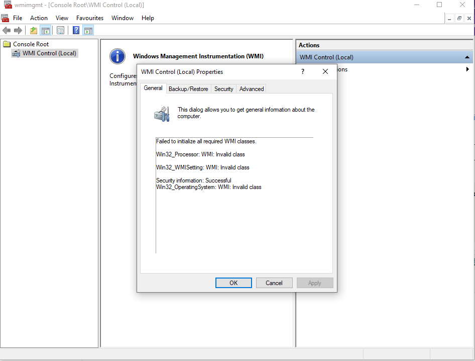How do I fix the WMI : Win32_Processor and Win32_WMISetting